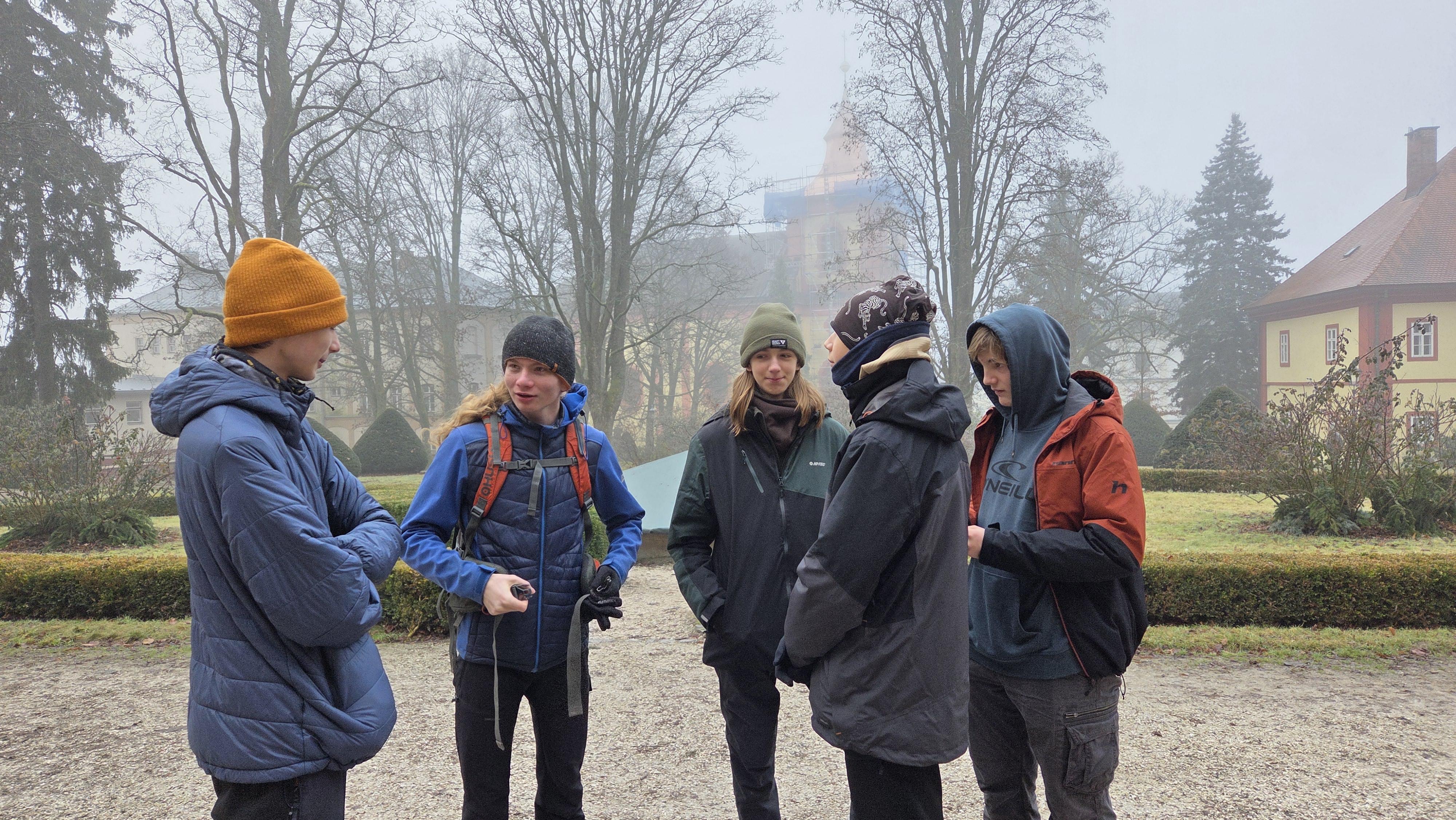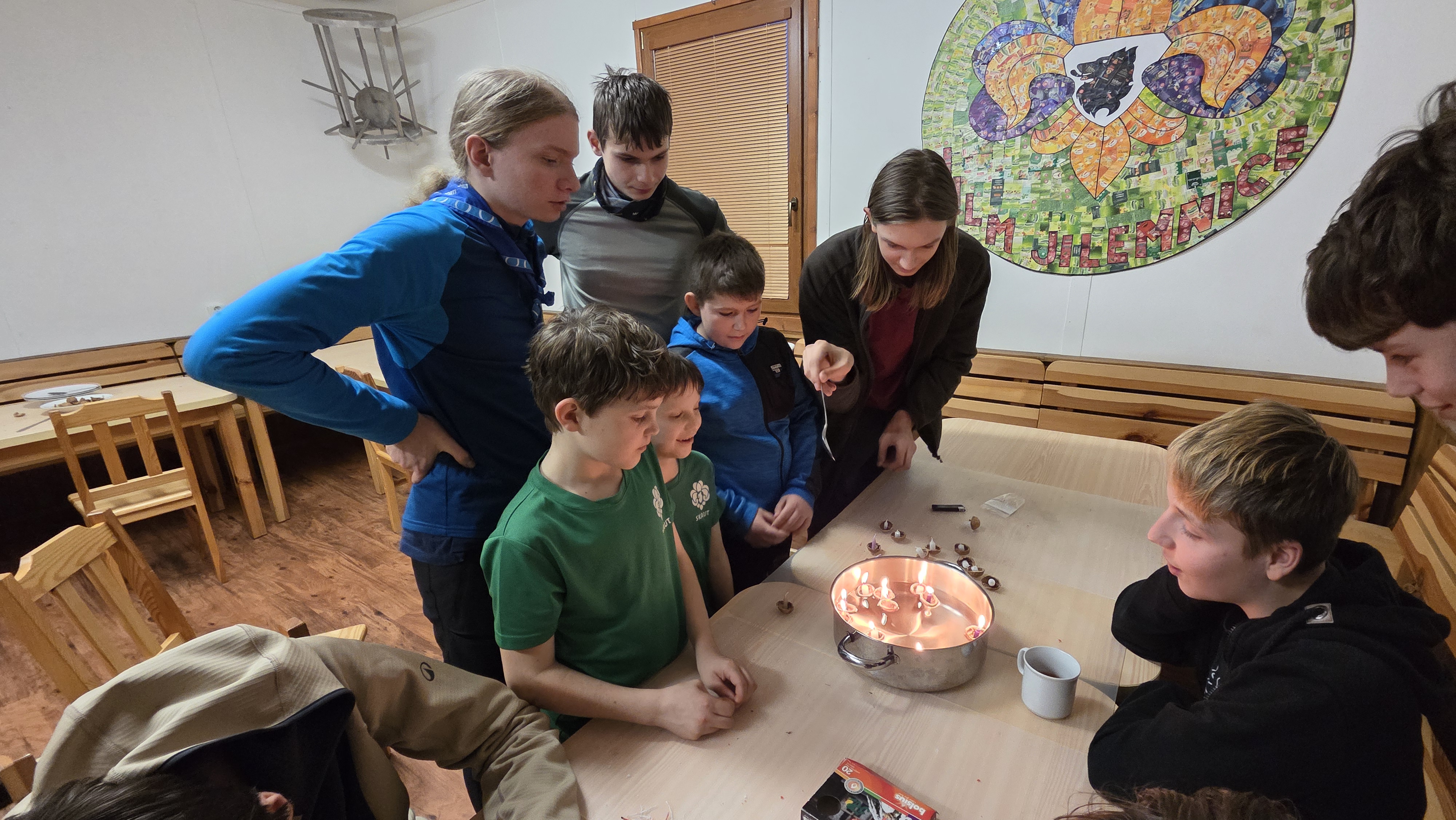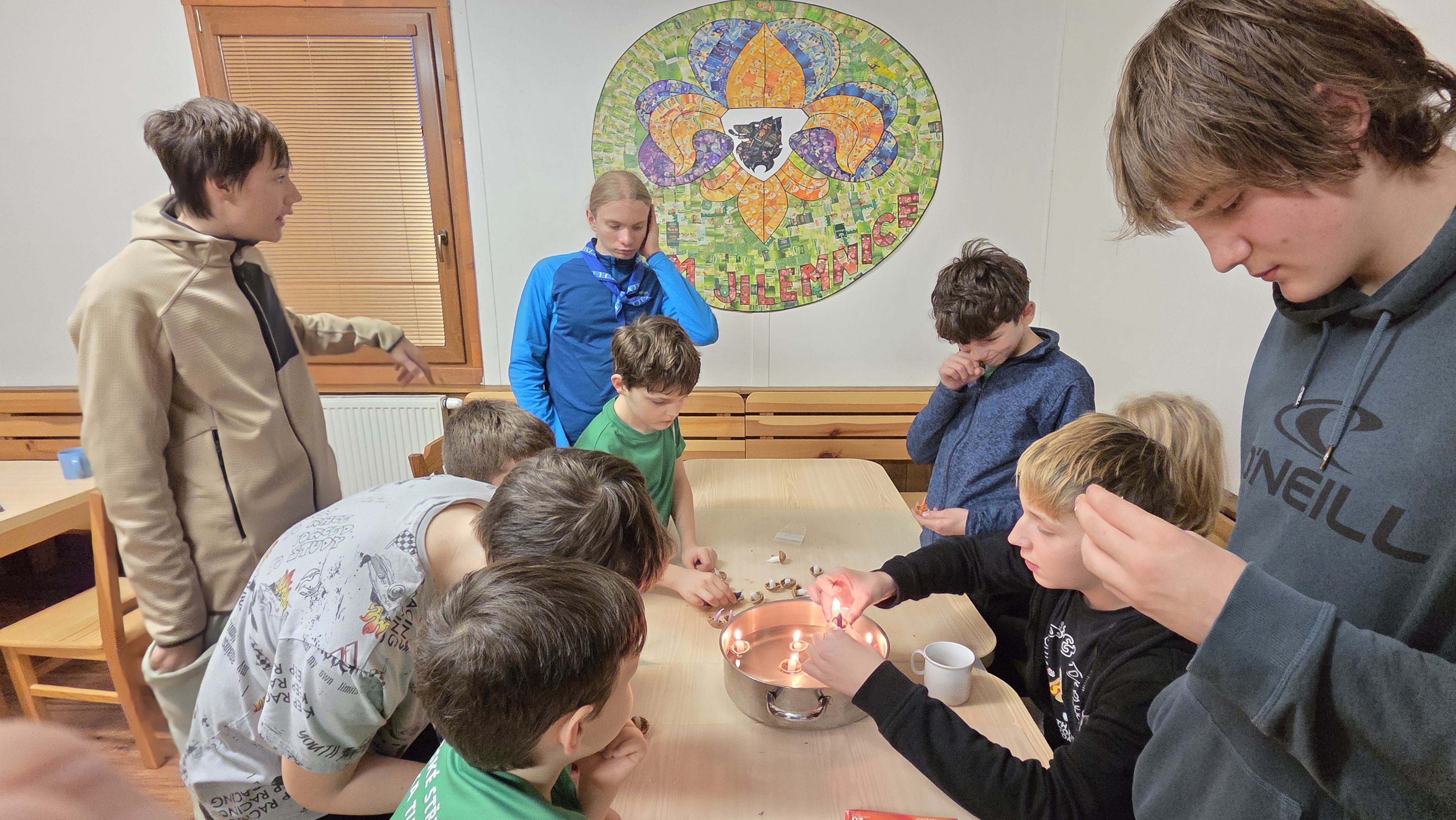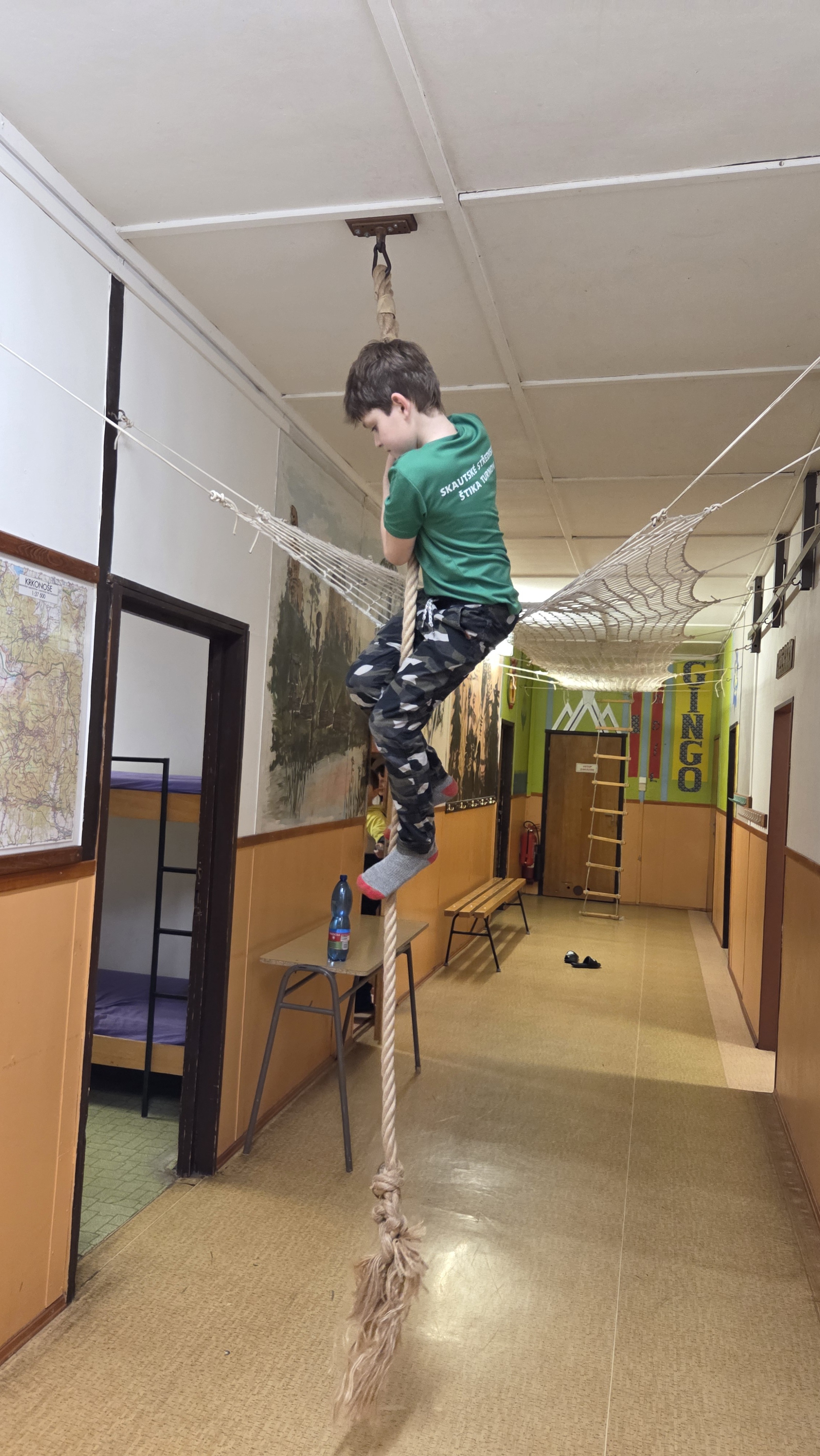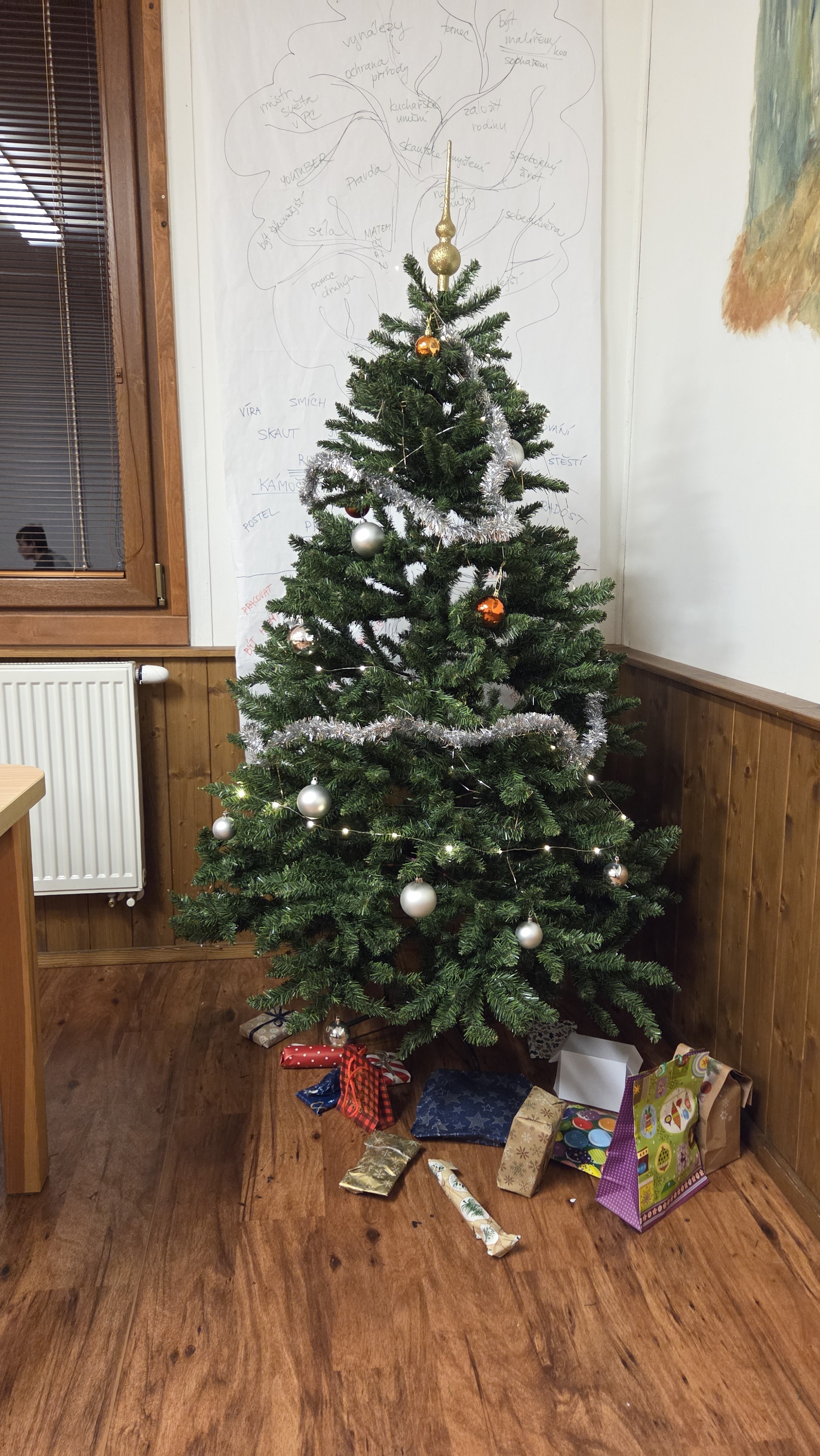 Vánoční víkendovka – Jilemnice Komár, 26.12.2025 V pátek 12. 12. jsme vyrazili na víkendovku do Jilemnice. Po skoro 2 hodinové přeplněnými vlaky (skupin, kteří měli v plánu víkendovou akci bylo více) dorážíme ke klubovnám střediska JILM, kde se ubytujeme. Po zabydlení a večeři prozkoumáváme základnu, kde nás zaujme lezecká stěna a zavěšená síť nad chodbou. Večer už trávíme v klidu u filmu vybraného kamzíky a deskových her. Na sobotu máme naplánováno hned několik aktivit. Po královské snídani vyrážíme na Jilemnický zámek, kde si projdeme expozici spojenou s historii Jilemnice zpestřenou malým kvízem. Následně už se přesouváme do expozice pohyblivých betlémů a zámeckých pokojů šlechtického rodu Harrachů. Po prohlídce spěcháme přes zaplněné náměstí (v Jilemnici se konají vánoční trhy) na základnu na oběd. Začátek odpoledne strávíme venku na louce u nedalekého lomu, abychom využili ještě zbytky venkovního světla. V kuchyni se mezitím začíná připravovat slavnostní večeře. Druhou část odpoledne v chatě vyrábíme lodičky a odléváme vosk a zdobíme stromeček. Po 6. hodině usedáme ke slavnostní večeři, ke které máme bramborový salát s řízky. Po večeři přichází dlouhoočekávaná chvíle – rozdávání dárků. Během rozdávání si zahrajeme a zazpíváme několik písniček a navazuje volná zábava, kdy se hraje hlavně Bang nebo soupeří v trackmanii. Ráno vstáváme už po 7 hodině a po snídani se pouštíme do úklidu základny. Vše stíháme na jedničku a už nám zbývá pouze cesta domů vlakem, která uteče jako voda. Všichni zúčastnění jsou z výpravy nadšení, tak snad příště bude hojnější účast. Akce 2025vypravy