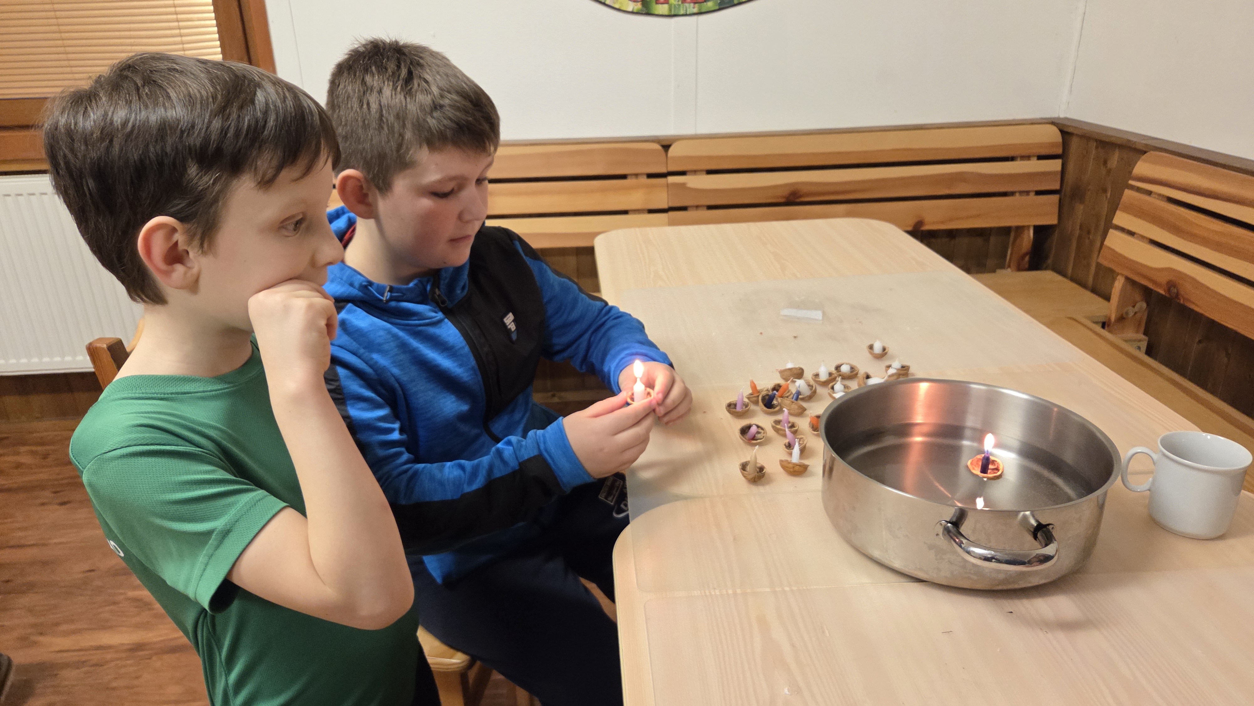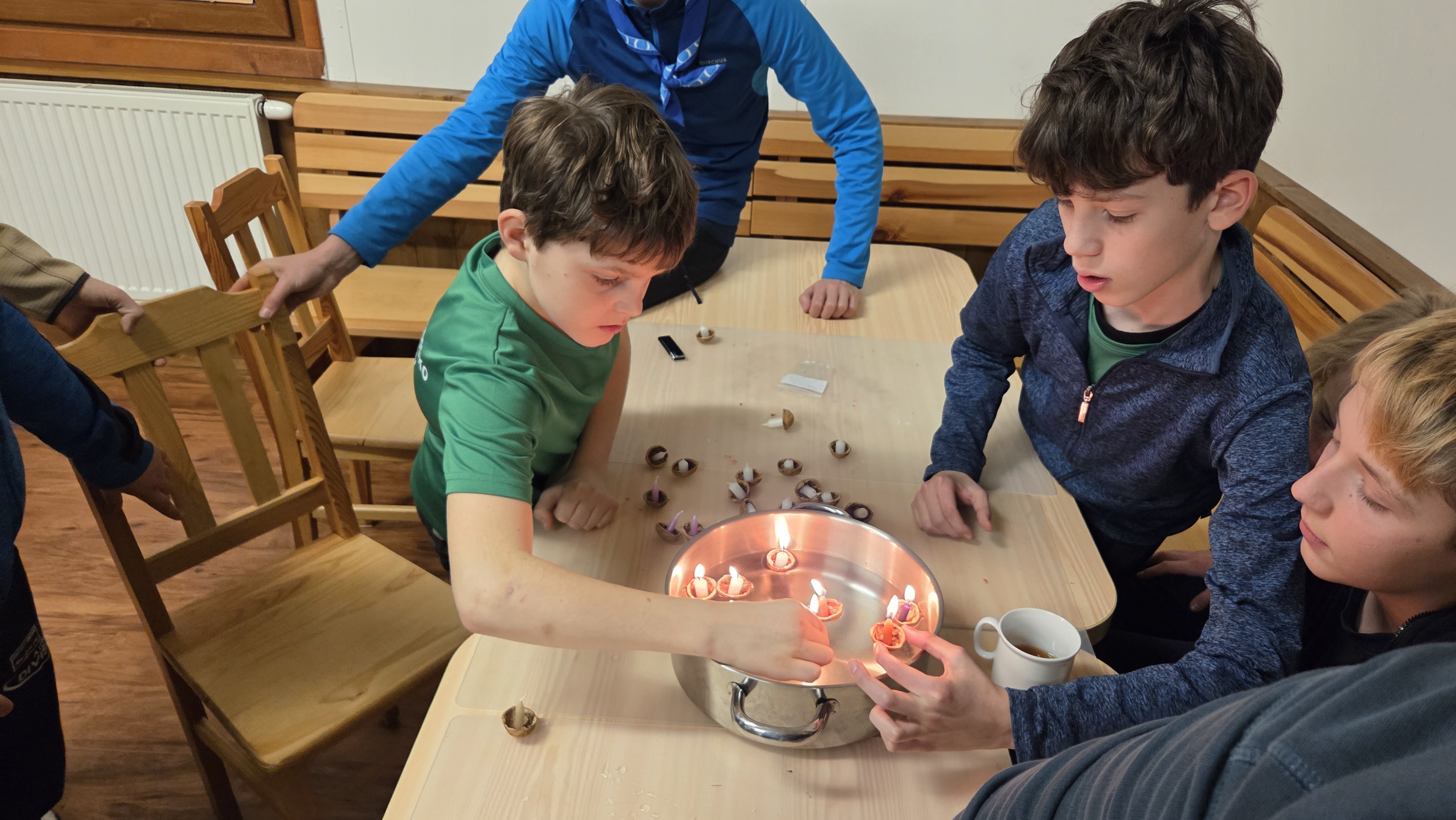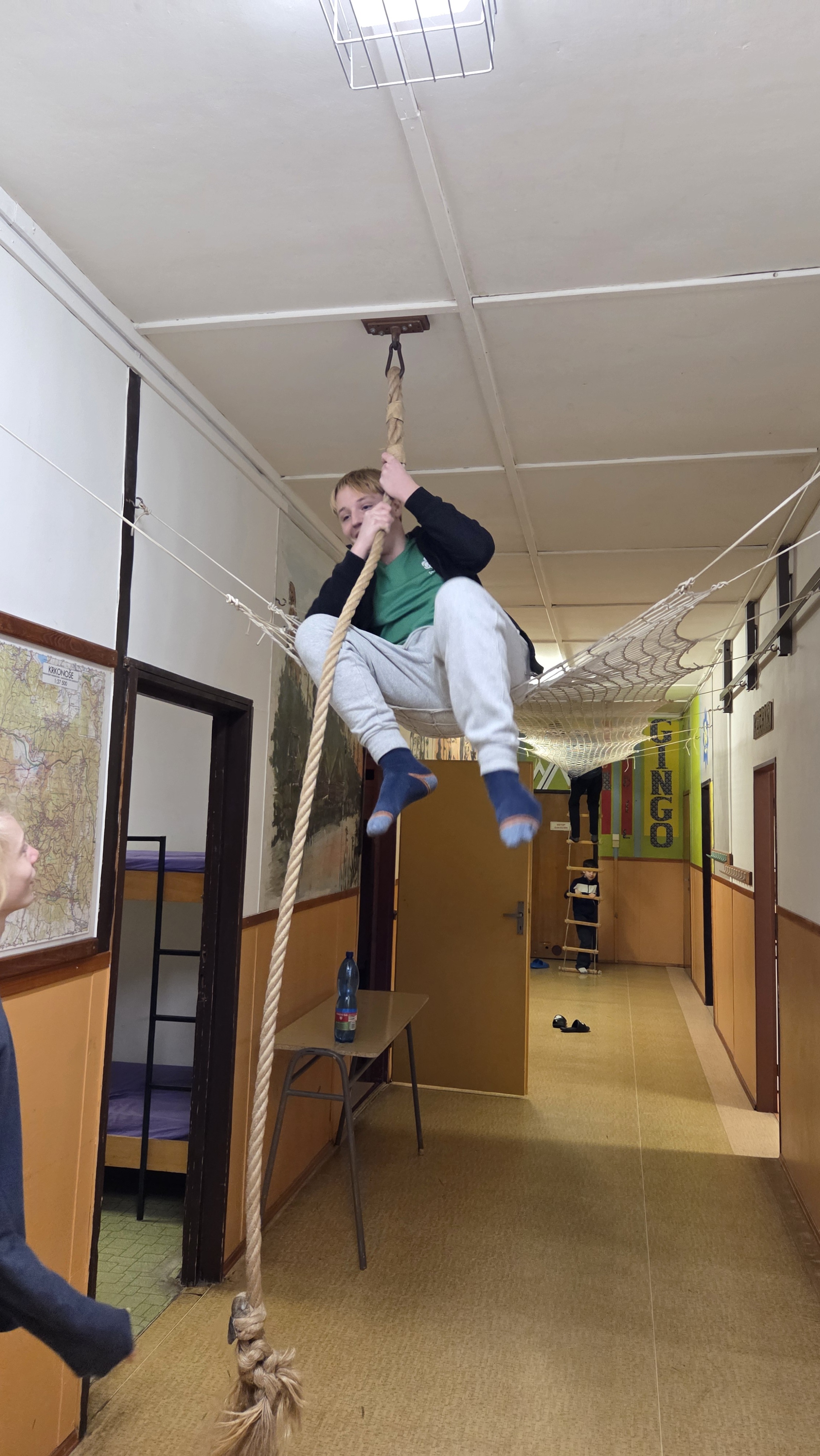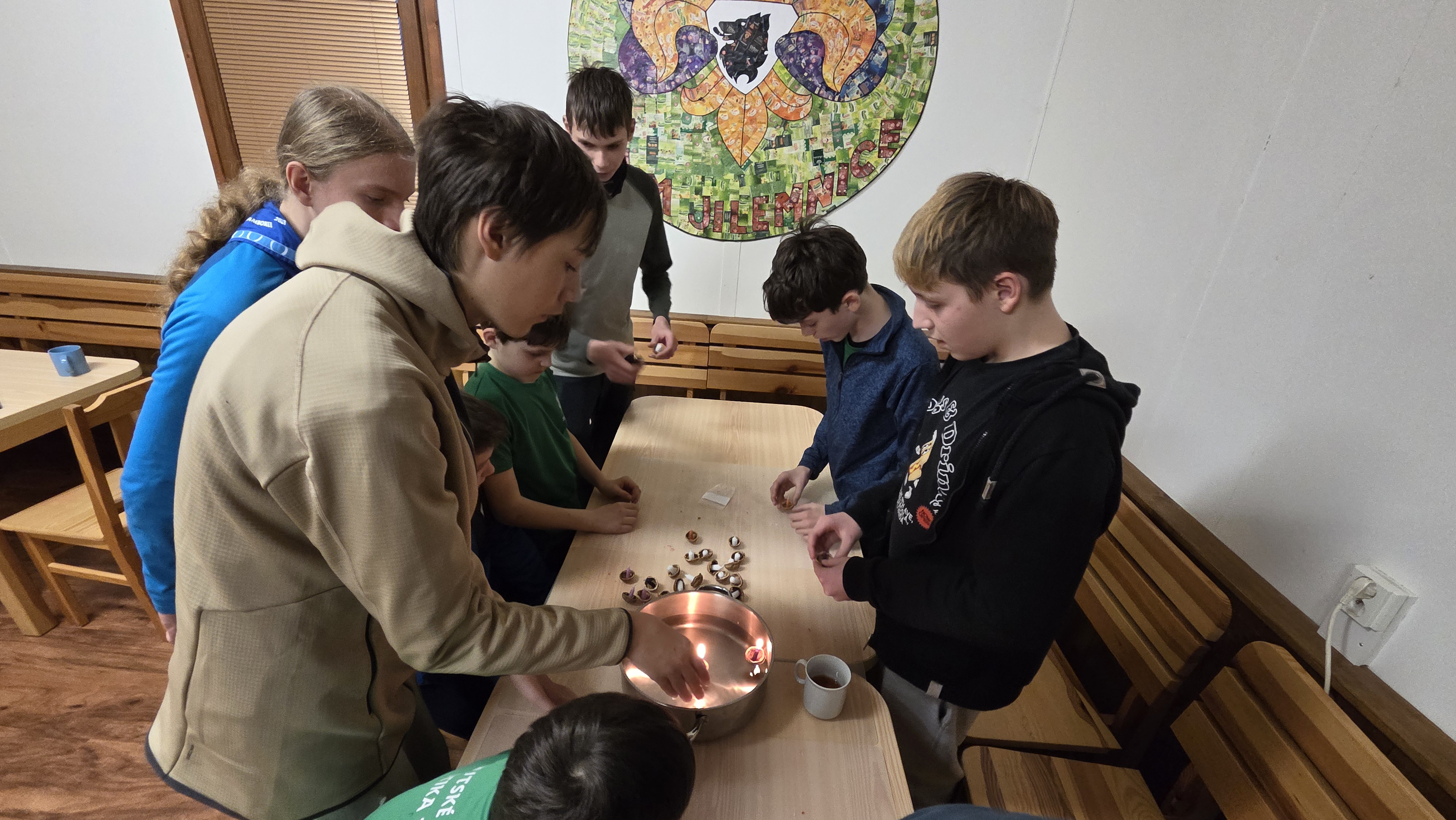 Vánoční víkendovka – Jilemnice Komár, 26.12.2025 V pátek 12. 12. jsme vyrazili na víkendovku do Jilemnice. Po skoro 2 hodinové přeplněnými vlaky (skupin, kteří měli v plánu víkendovou akci bylo více) dorážíme ke klubovnám střediska JILM, kde se ubytujeme. Po zabydlení a večeři prozkoumáváme základnu, kde nás zaujme lezecká stěna a zavěšená síť nad chodbou. Večer už trávíme v klidu u filmu vybraného kamzíky a deskových her. Na sobotu máme naplánováno hned několik aktivit. Po královské snídani vyrážíme na Jilemnický zámek, kde si projdeme expozici spojenou s historii Jilemnice zpestřenou malým kvízem. Následně už se přesouváme do expozice pohyblivých betlémů a zámeckých pokojů šlechtického rodu Harrachů. Po prohlídce spěcháme přes zaplněné náměstí (v Jilemnici se konají vánoční trhy) na základnu na oběd. Začátek odpoledne strávíme venku na louce u nedalekého lomu, abychom využili ještě zbytky venkovního světla. V kuchyni se mezitím začíná připravovat slavnostní večeře. Druhou část odpoledne v chatě vyrábíme lodičky a odléváme vosk a zdobíme stromeček. Po 6. hodině usedáme ke slavnostní večeři, ke které máme bramborový salát s řízky. Po večeři přichází dlouhoočekávaná chvíle – rozdávání dárků. Během rozdávání si zahrajeme a zazpíváme několik písniček a navazuje volná zábava, kdy se hraje hlavně Bang nebo soupeří v trackmanii. Ráno vstáváme už po 7 hodině a po snídani se pouštíme do úklidu základny. Vše stíháme na jedničku a už nám zbývá pouze cesta domů vlakem, která uteče jako voda. Všichni zúčastnění jsou z výpravy nadšení, tak snad příště bude hojnější účast. Akce 2025vypravy