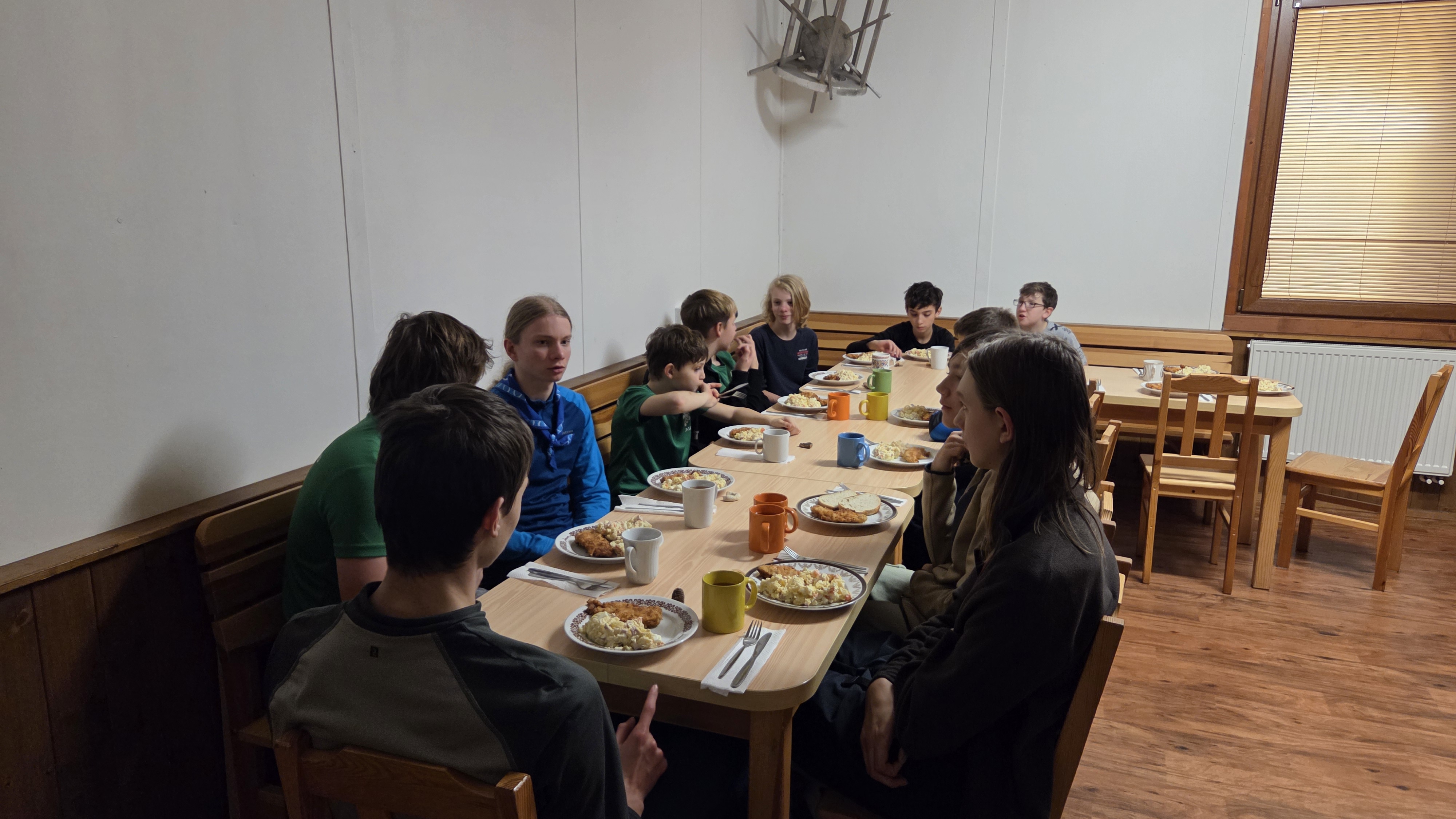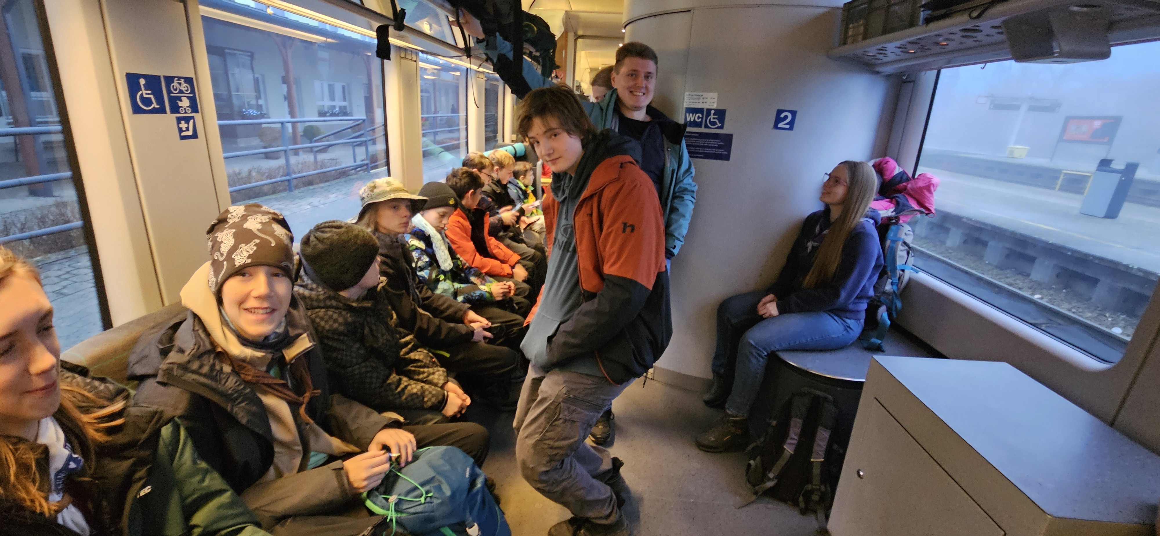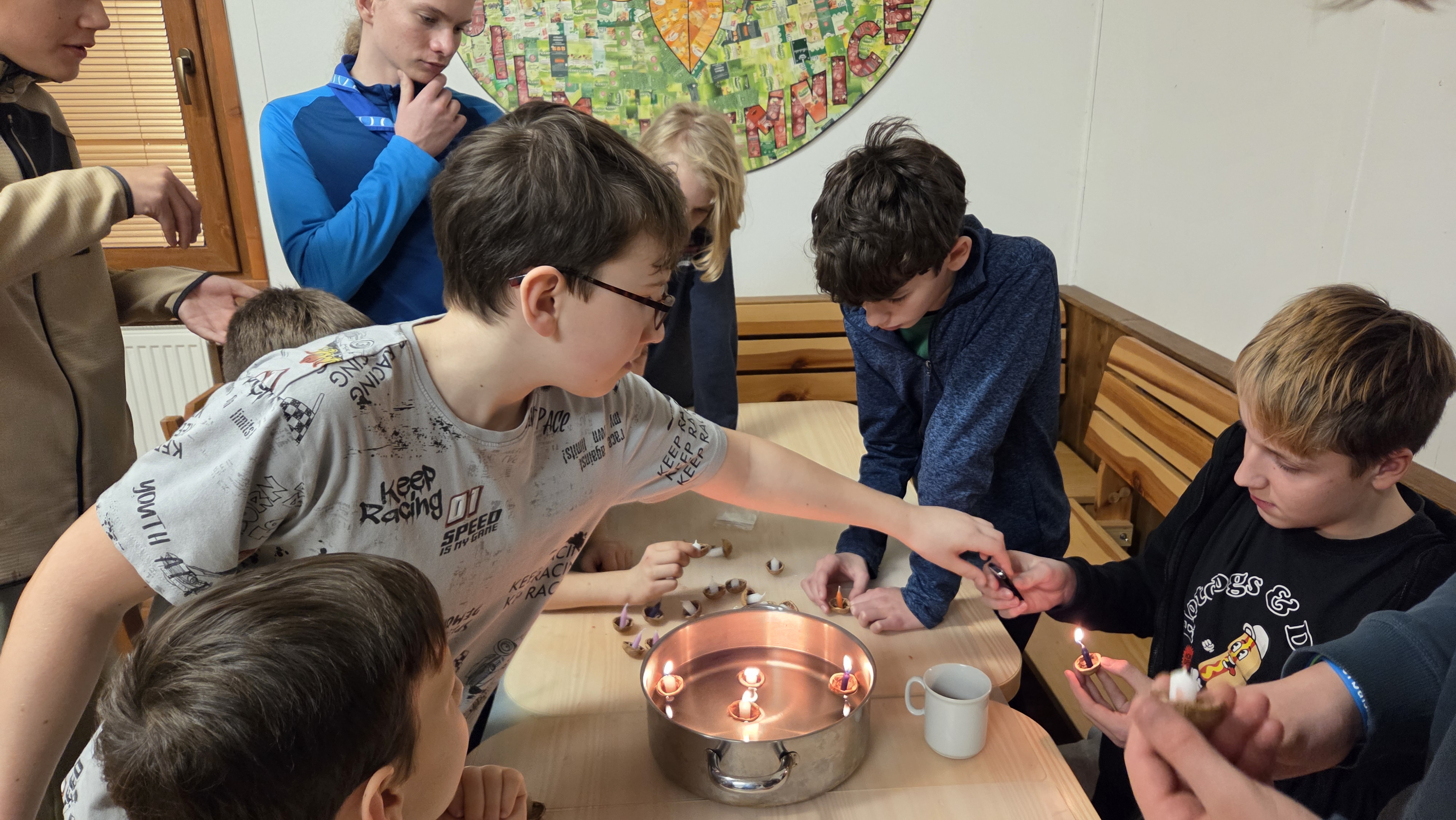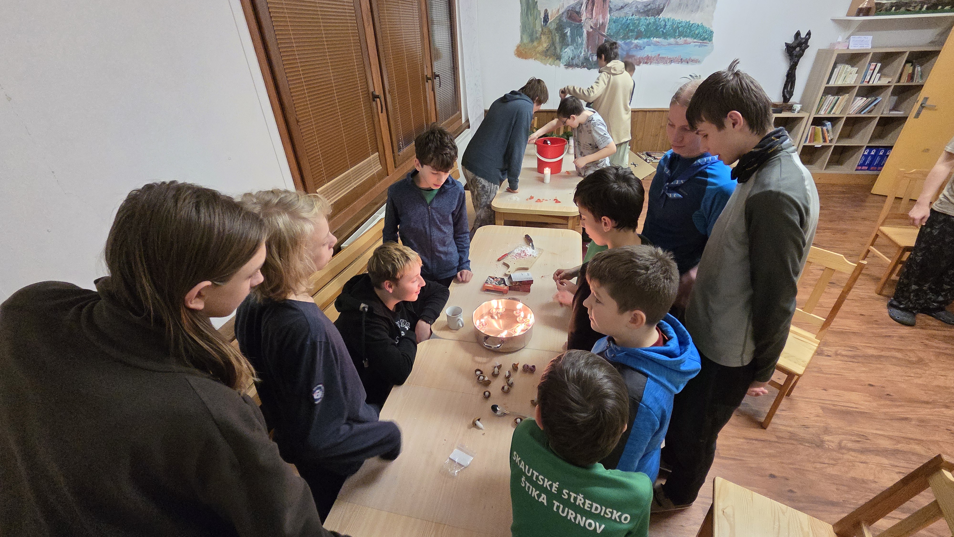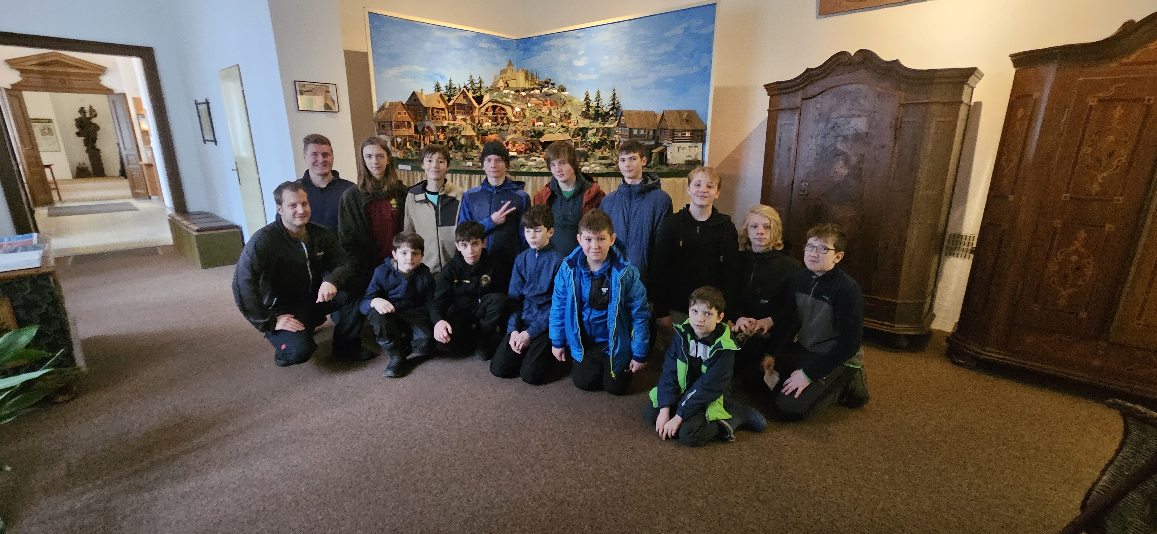 Vánoční víkendovka – Jilemnice Komár, 26.12.2025 V pátek 12. 12. jsme vyrazili na víkendovku do Jilemnice. Po skoro 2 hodinové přeplněnými vlaky (skupin, kteří měli v plánu víkendovou akci bylo více) dorážíme ke klubovnám střediska JILM, kde se ubytujeme. Po zabydlení a večeři prozkoumáváme základnu, kde nás zaujme lezecká stěna a zavěšená síť nad chodbou. Večer už trávíme v klidu u filmu vybraného kamzíky a deskových her. Na sobotu máme naplánováno hned několik aktivit. Po královské snídani vyrážíme na Jilemnický zámek, kde si projdeme expozici spojenou s historii Jilemnice zpestřenou malým kvízem. Následně už se přesouváme do expozice pohyblivých betlémů a zámeckých pokojů šlechtického rodu Harrachů. Po prohlídce spěcháme přes zaplněné náměstí (v Jilemnici se konají vánoční trhy) na základnu na oběd. Začátek odpoledne strávíme venku na louce u nedalekého lomu, abychom využili ještě zbytky venkovního světla. V kuchyni se mezitím začíná připravovat slavnostní večeře. Druhou část odpoledne v chatě vyrábíme lodičky a odléváme vosk a zdobíme stromeček. Po 6. hodině usedáme ke slavnostní večeři, ke které máme bramborový salát s řízky. Po večeři přichází dlouhoočekávaná chvíle – rozdávání dárků. Během rozdávání si zahrajeme a zazpíváme několik písniček a navazuje volná zábava, kdy se hraje hlavně Bang nebo soupeří v trackmanii. Ráno vstáváme už po 7 hodině a po snídani se pouštíme do úklidu základny. Vše stíháme na jedničku a už nám zbývá pouze cesta domů vlakem, která uteče jako voda. Všichni zúčastnění jsou z výpravy nadšení, tak snad příště bude hojnější účast. Akce 2025vypravy